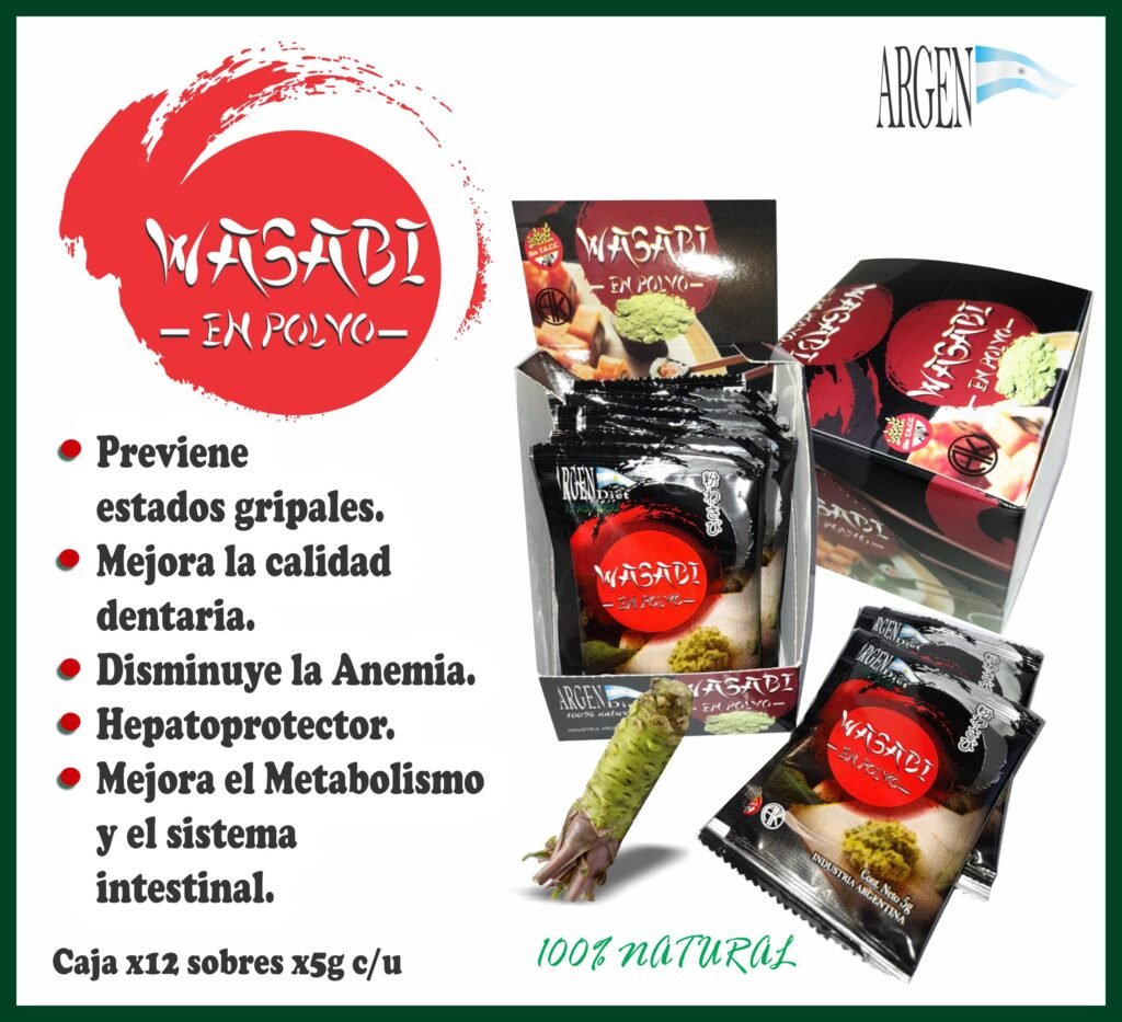 Preparado en polvo para hacer pasta de wasabi. Añadir un poco de agua a una cantidad pequeña de polvo y mezclar bien para conseguir una pasta bastante densa. Es el acompañamiento picante “casi” imprescindible para el sushi.